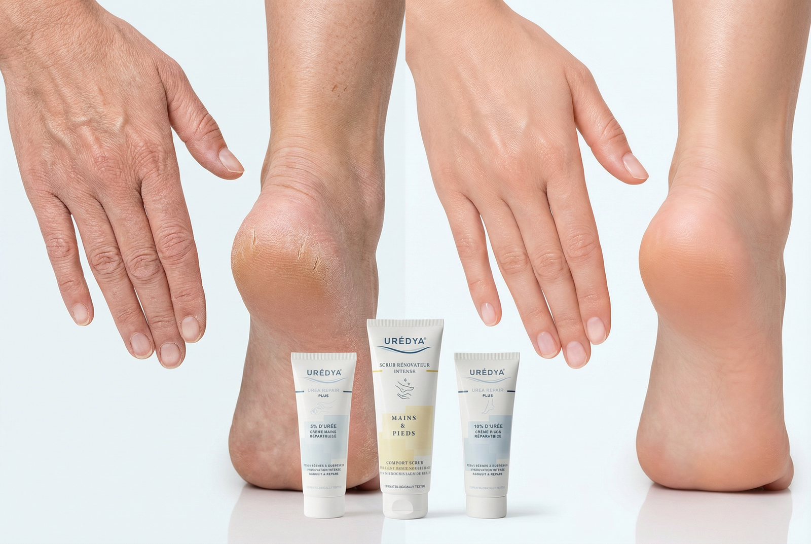 L’expertise dermo-cosmétique dédiée aux mains et aux pieds secs.