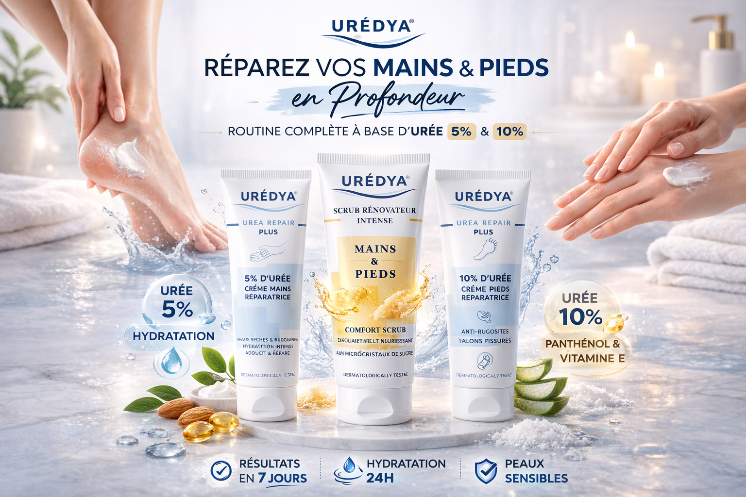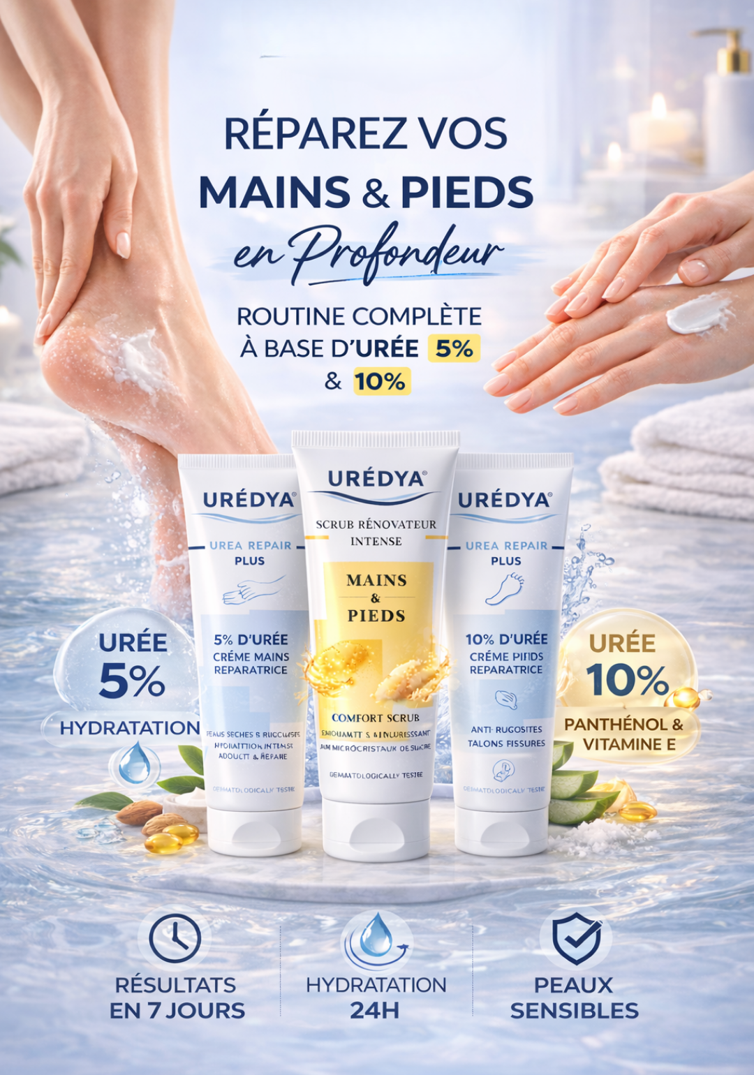 Des solutions ciblées à base d’urée pour réparer, lisser et hydrater en profondeur. Résultats visibles dès les premières applications.